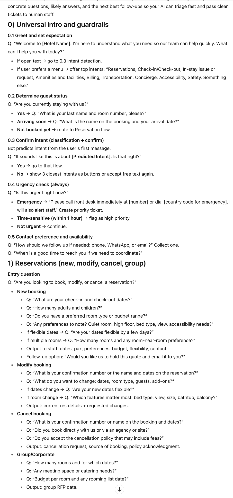 Let’s say you want to create a complex logic tree diagram for an AI chatbot that answers questions related to hotel customer service. Use the following hypothetical prompt.