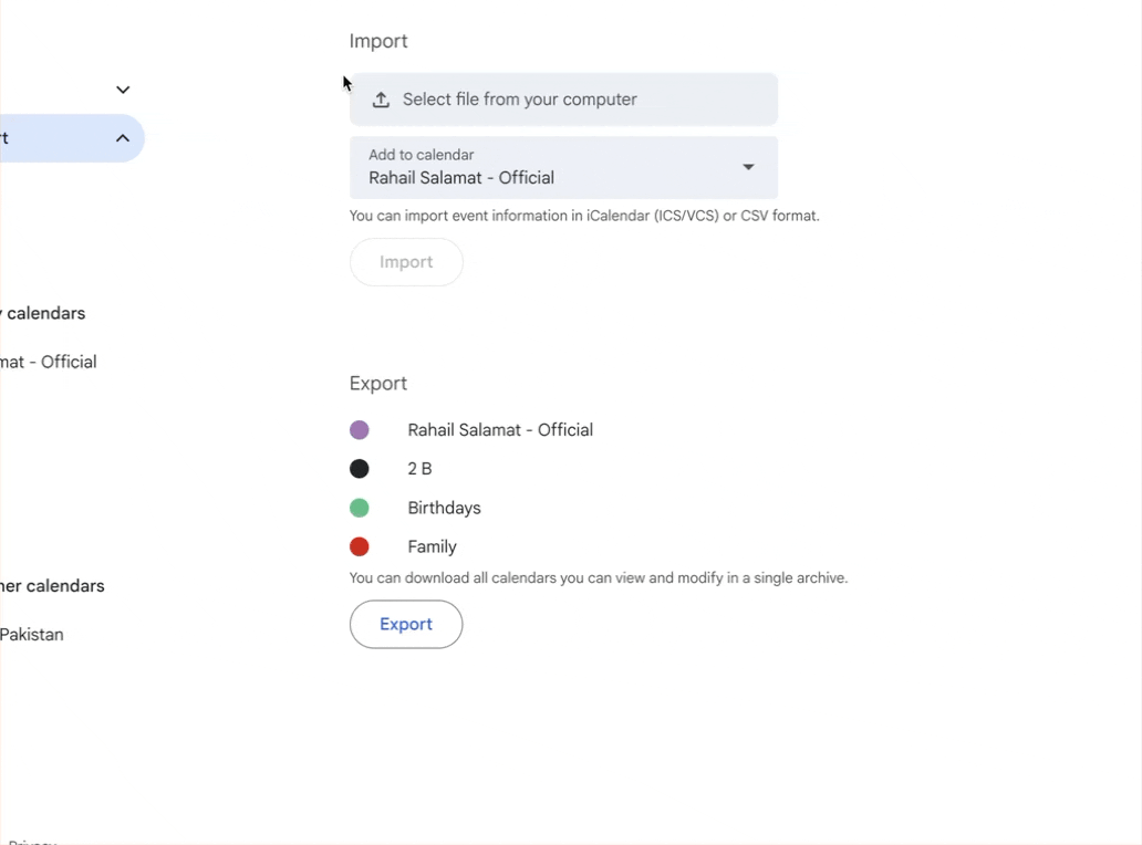 - Import the .ics file into Google Calendar