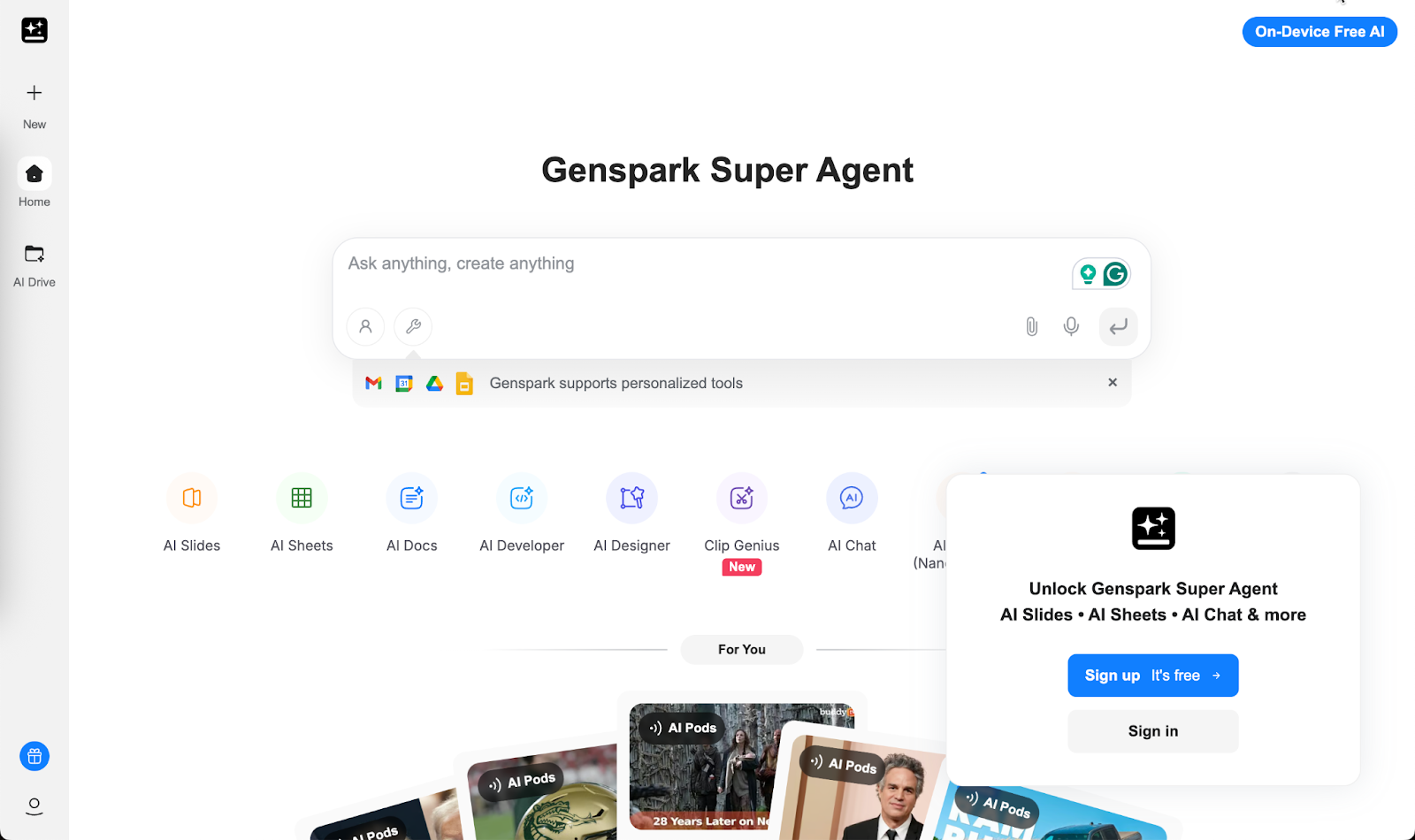 The focus here is to use Genspark Super Agent. Head over to Genspark. Create a free account or sign in to an existing one.