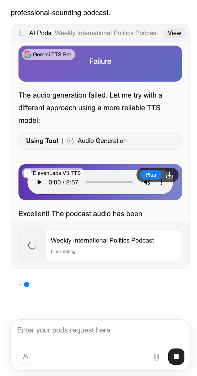 And in a minute or two, it will summarize your X feed and create a fantastic podcast based on the topics in your Twitter feed.