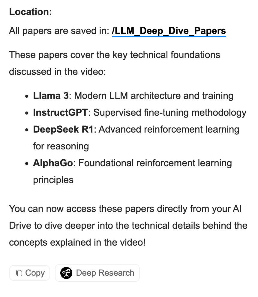 Download all the papers mentioned in the video to my AI drive and display the download results within the AI drive.