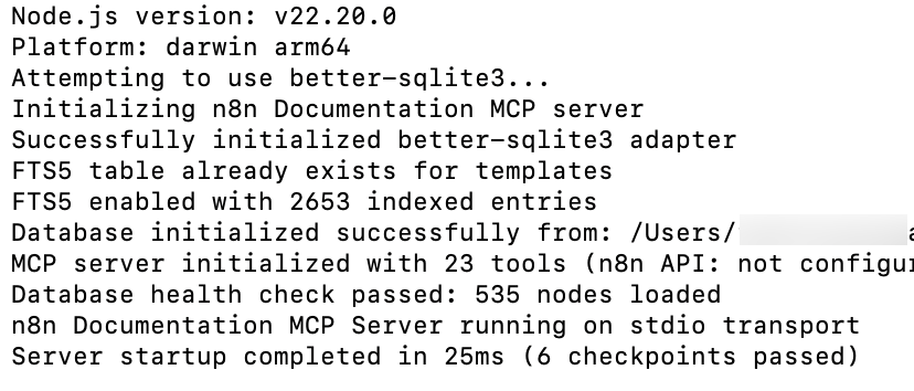 Press enter, type "Y" if prompted, and you should see "n8n MCP server is running." That means everything's working.