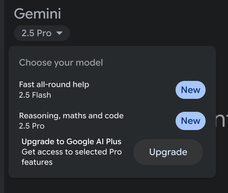 Make sure that Gemini 2.5 pro is selected. This is important for coding an app. Click the model name under the Gemini logo and select ‘2.5 pro.’