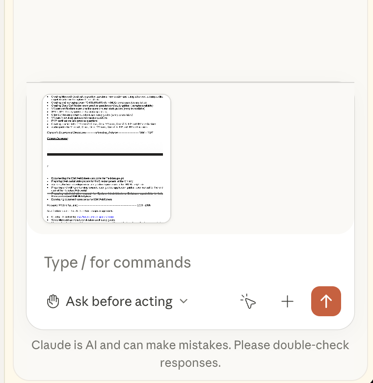 For this step, you might need to access the Claude chat service since Claude Chrome doesn’t support pdf or Word document attachments.