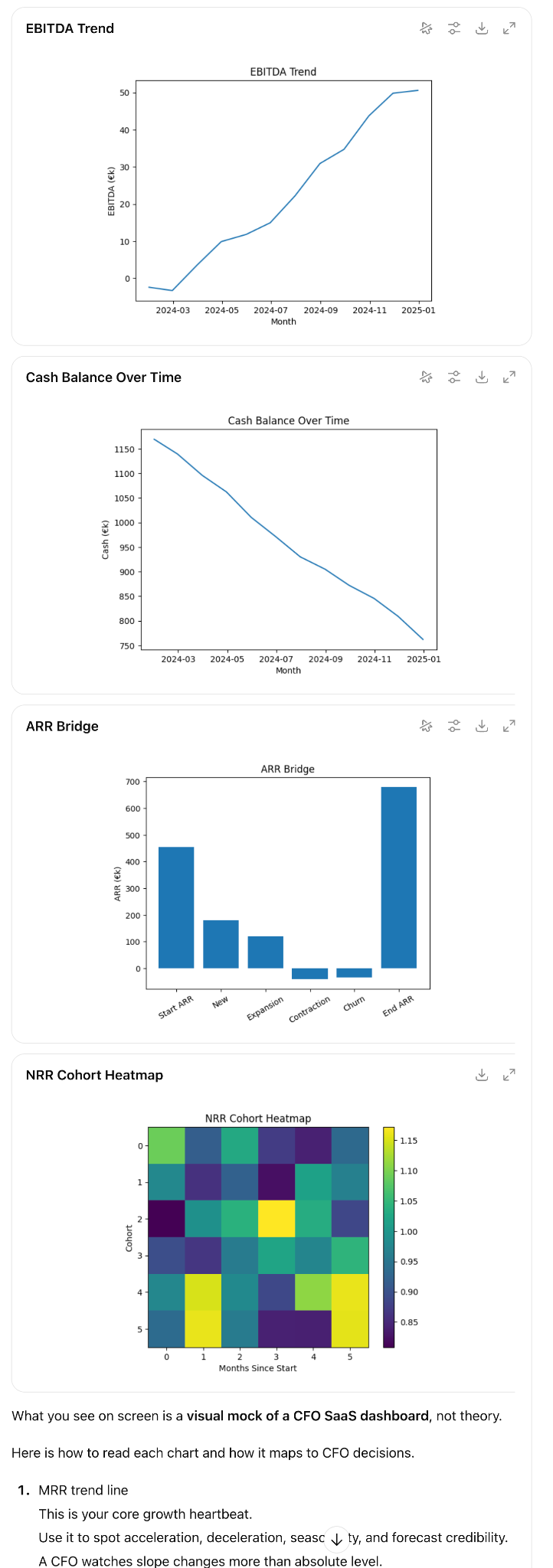 Design a KPI dashboard for a CFO of a mid-sized SaaS business.
