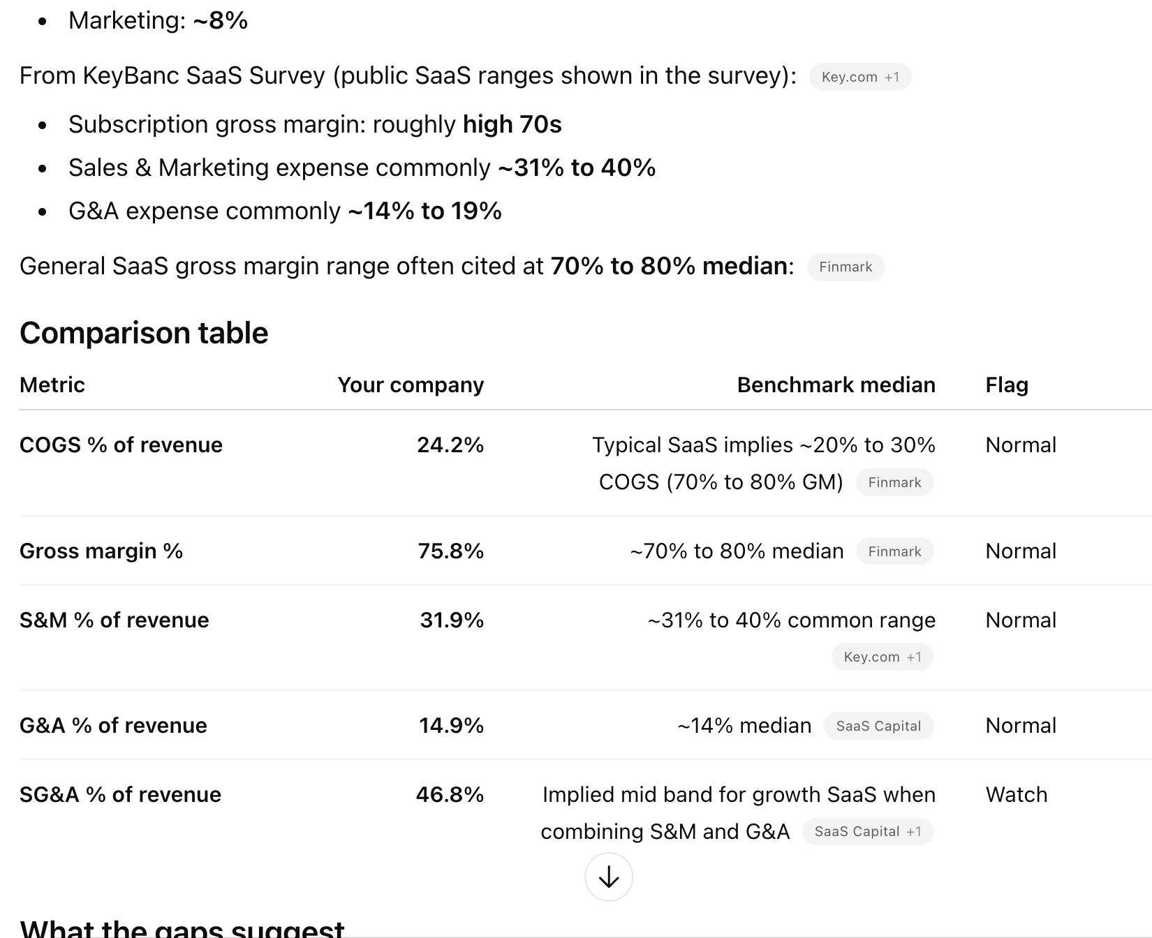 Compare my company’s SG&A and COGs to industry benchmarks
