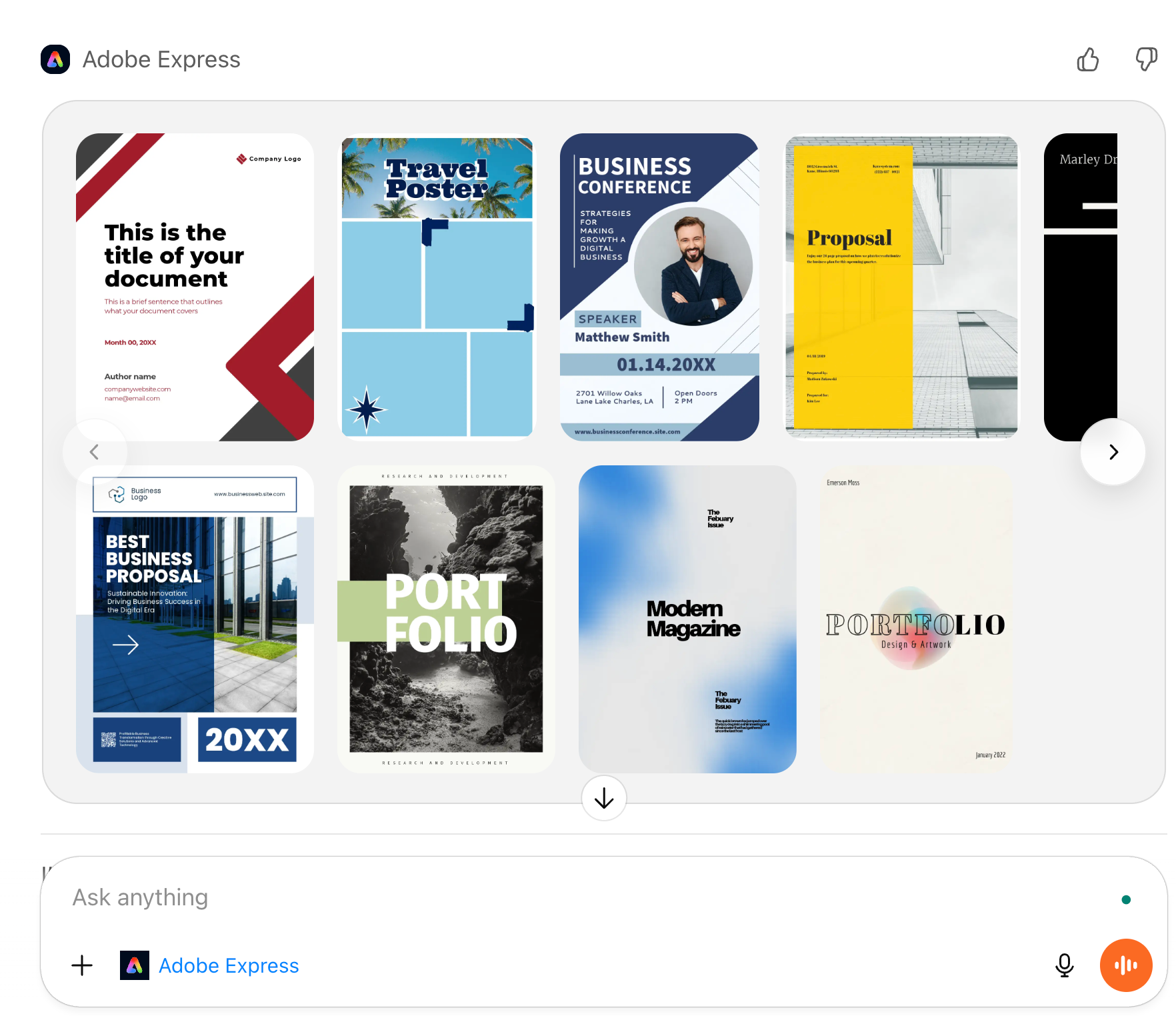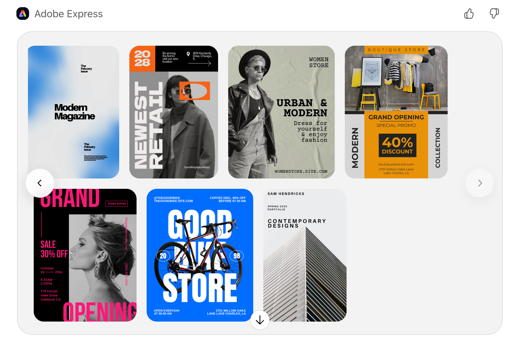 Select the one that you like. You can always tell Adobe Express to search for something better.