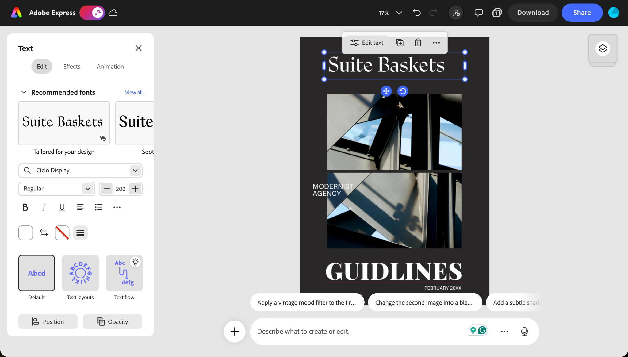 You can do all the edits you need in the Adobe Express interface. You can also apply all sorts of filters through prompts.