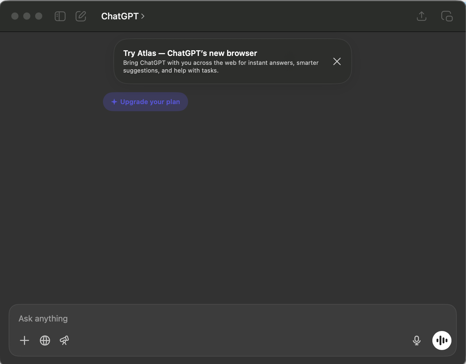 There you have it. ChatGPT is installed. Launch the application and log in to your Plus or Pro account.