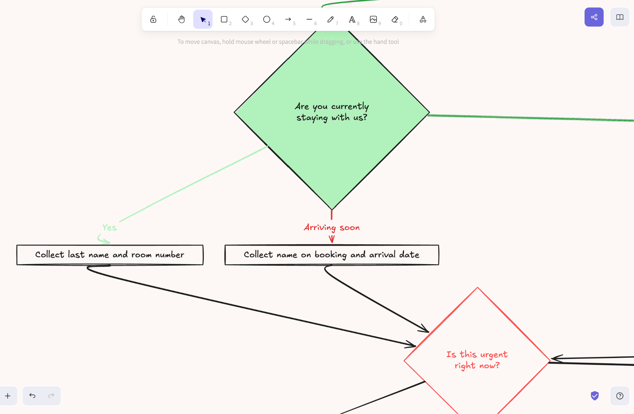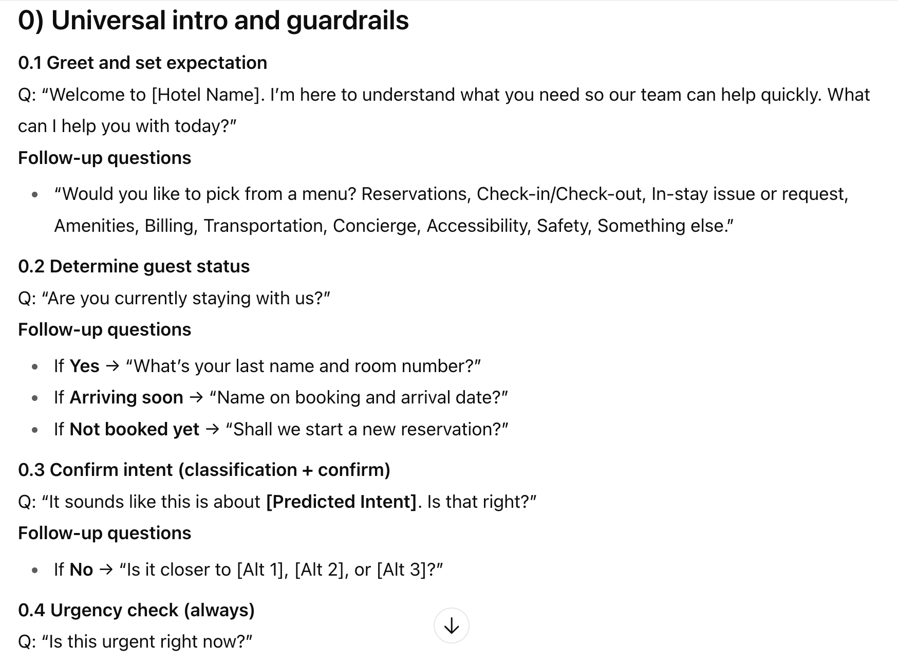 Let’s say you want to create a complex logic tree diagram for an AI chatbot that answers questions related to hotel customer service. Use the following hypothetical prompt.