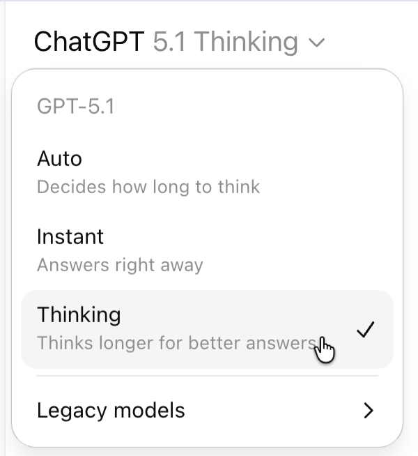 Make sure to select the ‘Thinking model’ to get the most out of ChatGPT shopping research.